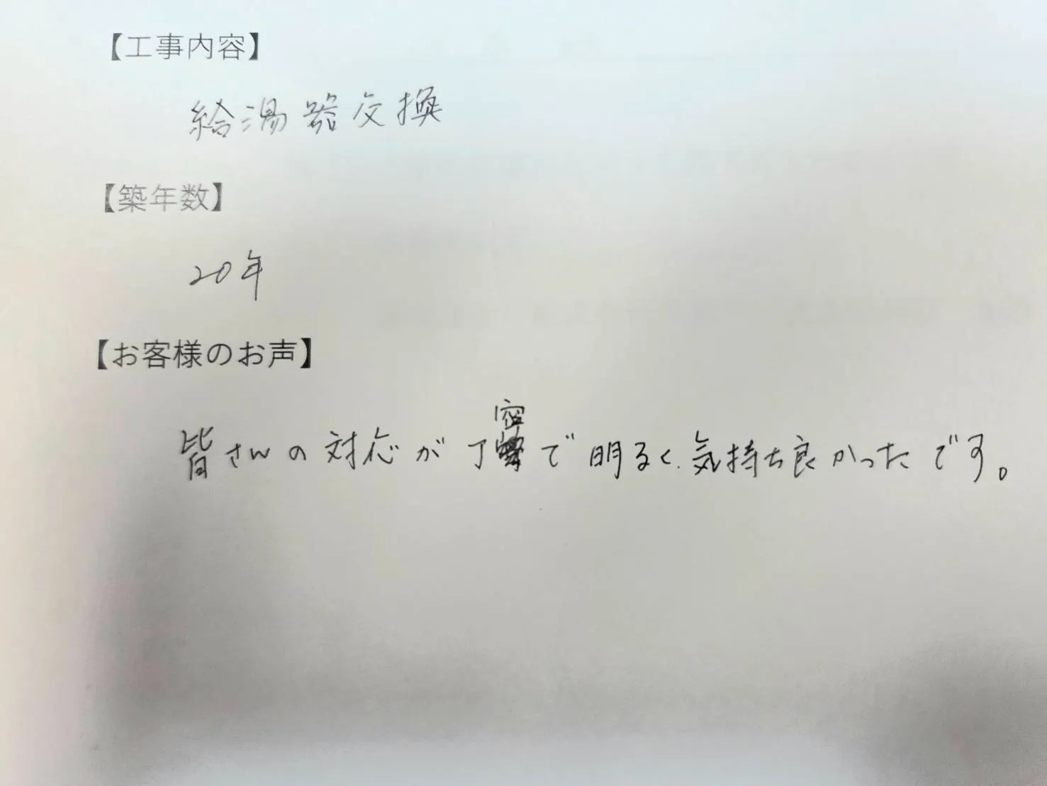 【お客様の声】「皆さんの対応が丁寧で明るく気持ち良かったです。」