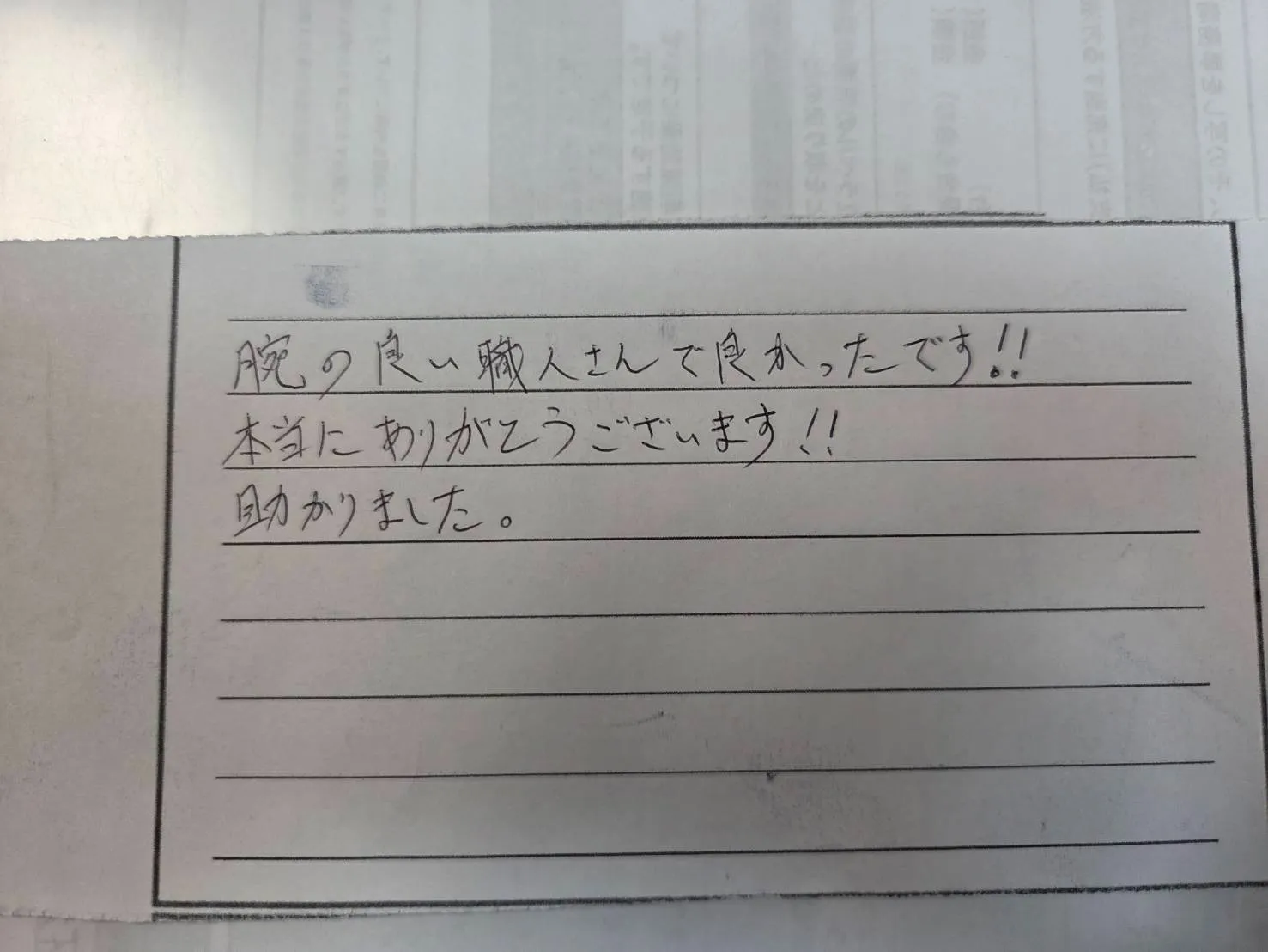 【お客様の声】「腕の良い職人さんで良かったです!!本当にありがとうございます!!助かりました。」