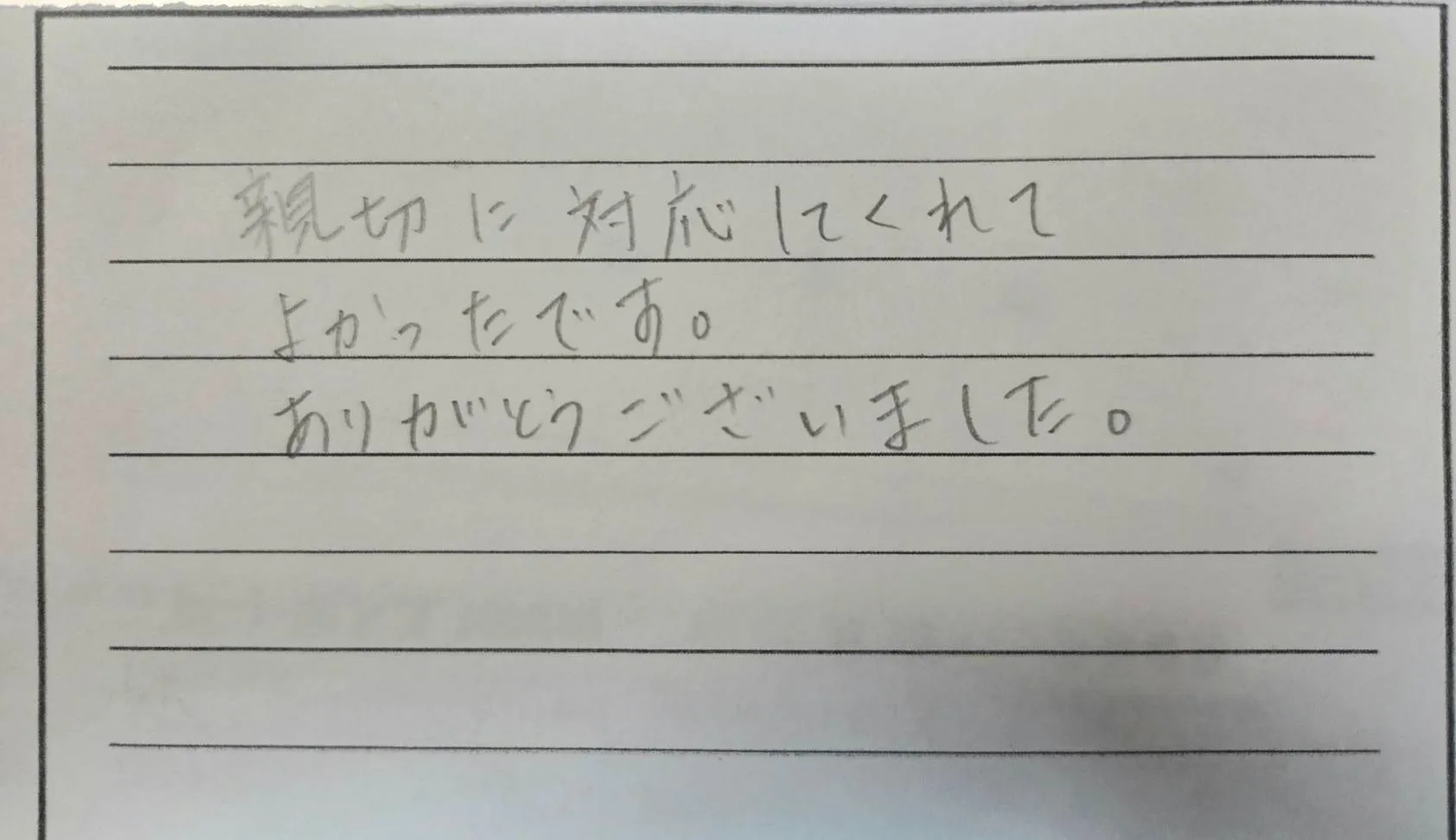 【お客様の声】「親切に対応してくれてよかったです。ありがとうございました。」