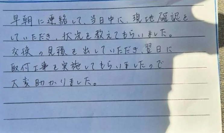 お問合わせから翌日施工を実現!
